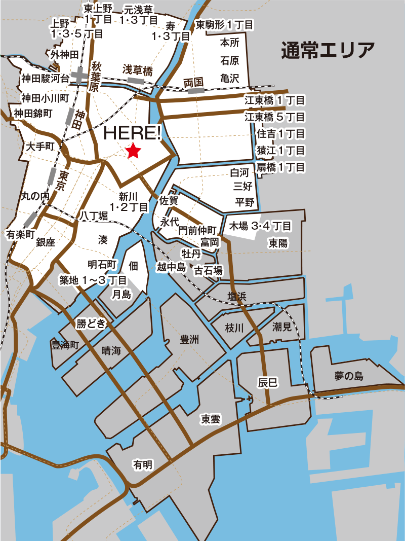 お届け可能なエリアはブラザーズから半径約2.5Km以内の通常エリアと半径約2.5Km以上の広域エリアがあります。右記の地図をご参照ください。